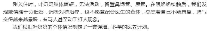 我們根據(jù)葉奶奶的個(gè)體情況制定了一套詳細(xì)、科學(xué)的醫(yī)養(yǎng)計(jì)劃